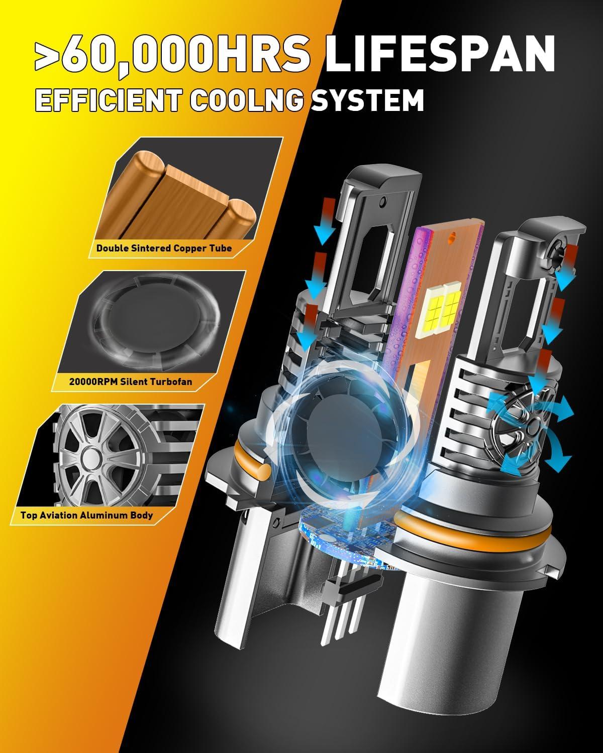 Enhanced Durability: Designed to endure extreme weather and rigorous use, these H1 fog lights are crafted from premium aerospace-grade aluminum for long-lasting performance and reliability. With a high-speed 22,000 RPM cooling fan, Termitor H1 dual beam bulbs provide exceptional cooling and boast over 70000 hours of stable, continuous operation