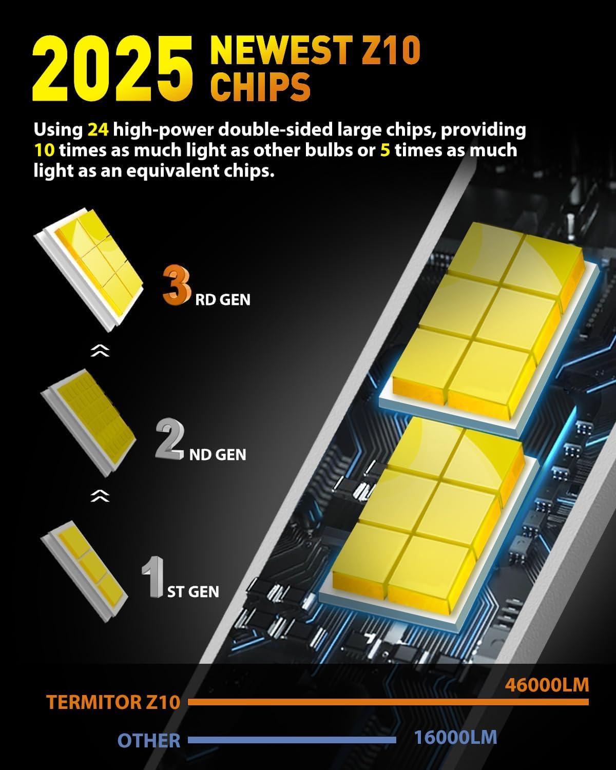 Experience a Blazing 10X Brightness Boost: Enhance your driving journey with our high-power 9008/H13 bulbs, boasting 24advanced chips per light and an astounding 60,000LM brightness per set. Powered by cutting-edge technology, these lights deliver dependable and efficient illumination, ensuring an optimal nighttime driving experience