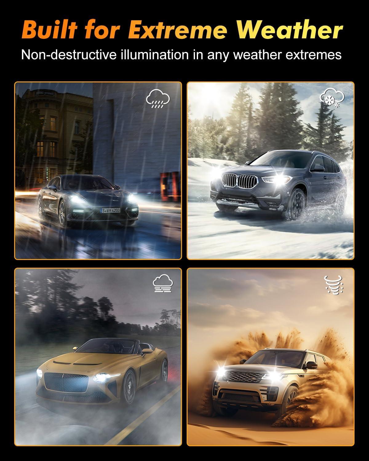 【UNRIVALED PERFORMANCE】Our lights constructed with premium aviation-grade aluminum, a thermostatic copper plate, and a 22,000 RPM high-efficiency cooling fan, our lighting system guarantees rapid heat dissipation for stable, long-lasting performance. Each bulb boasts an extended lifespan of up to 60,000 hours.