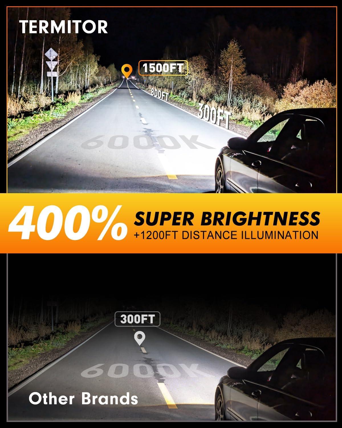 【99%+ VEHICLE COMPATIBILITY】Thanks to built-in CANBUS technology, these H4/9003/HB2 bulbs are compatible with over 99% of vehicles, eliminatina fickerina and decodina issues. Please note: Always check your car's manual for the right bulb size – online guides can be wrong. Need help? Contact Termitor.